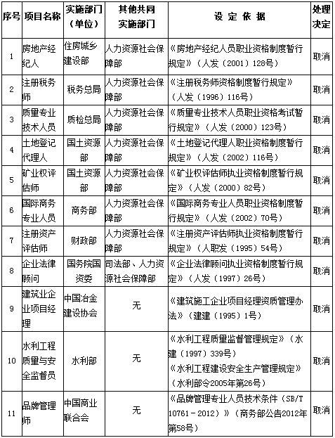8月12日,国务院发布通知,取消11项职业资格许可和认定事项,其中包括取消“房地产经纪人员职业资格许可和认证”以及“土地登记代理人职业资格许可与认证”。
