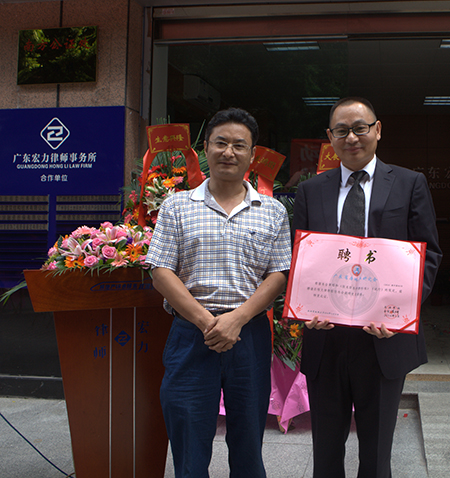 广东宏力律师事务所主任吕传文律师凭借精湛的业务技能以及崇高的敬业精神,得到了各领导、同仁及客户的支持。为此,2014年9月20日,广东省房地产研究会副会长叶才勇教授为表彰并鼓励吕传文律师,带领广东宏力律师事务所继续发扬敢于创新、乐于奉献、诚信服务的精神,继续为房地产法律服务做出贡献,向其颁发了“广东省房地产研究会副研究员”聘书。