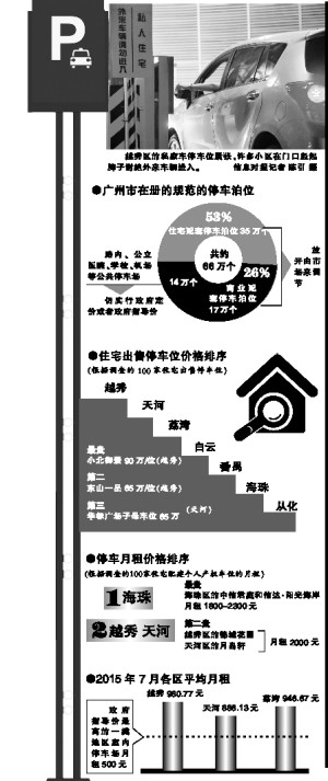 在100家住宅配建个人产权车位的月租方面,停车月租最贵的是海珠,越秀和天河的停车位出租也是相当贵。记者发现,调查的住宅区中,停车费最贵2300元,最低300元。其中2015年7月,越秀、天河、荔湾三个区的平均价格,均比政府指导价最高的一类地区室内停车场月租500元,贵了近一半。“这也说明,很多小区早就没有按政府指导价操作,已进入市场化操作。”潘国璠说。