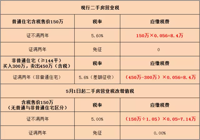 二手房营改增政策定了,证满两年免征税 不足两年少交税(一张图秒懂)