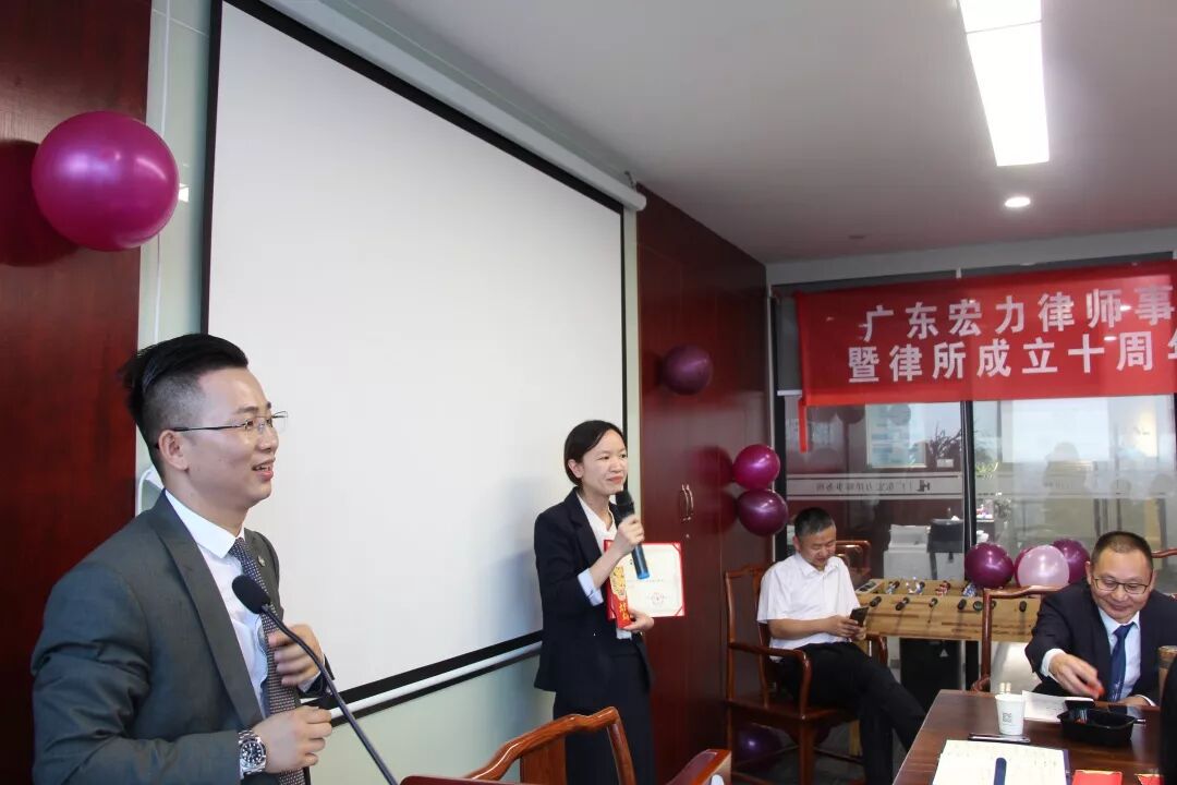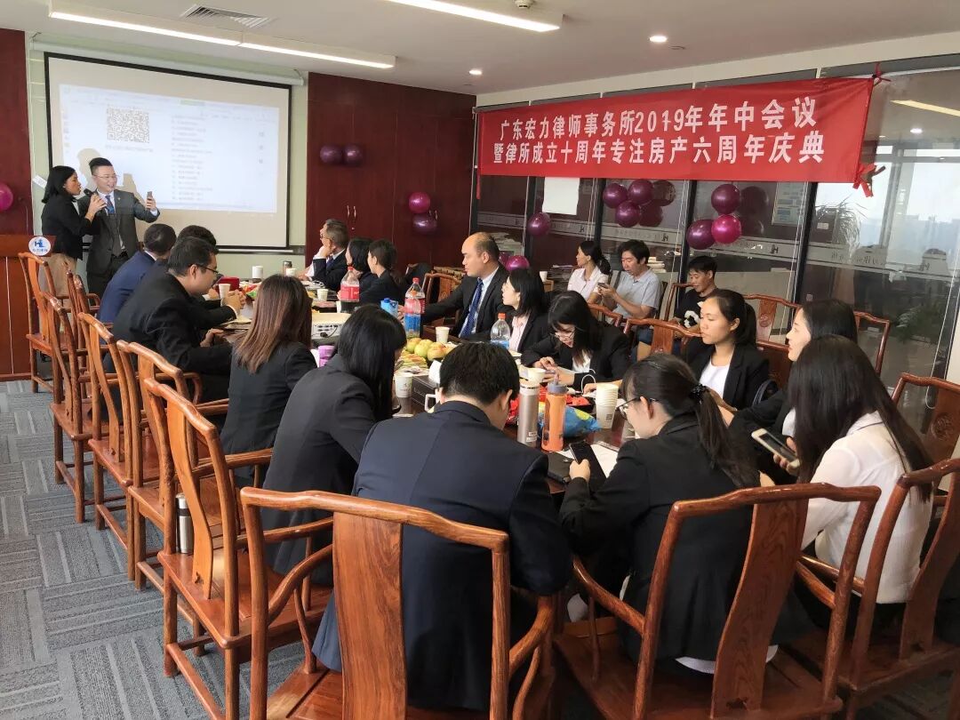 2019年8月9日,广东宏力律师事务所2019年年中会议暨律所成立十周年专注房产六周年会议在保利中心2501会议室举行,广东宏力律师事务所主任吕传文律师、副主任罗欢平律师、总监陈榕英以及各专职律师、律师助理、实习律师、财务、市场专员,行政专员等共计三十余名成员参加本次会议,会议总结了律所2019年上半年取得的成绩,分享各自在这半年以来的办案经验,并确立下半年的目标,同时对上半年表现出色的同事进行表彰,本次会议分五个环节,由广东宏力律师事务所副主任罗欢平律师主持。