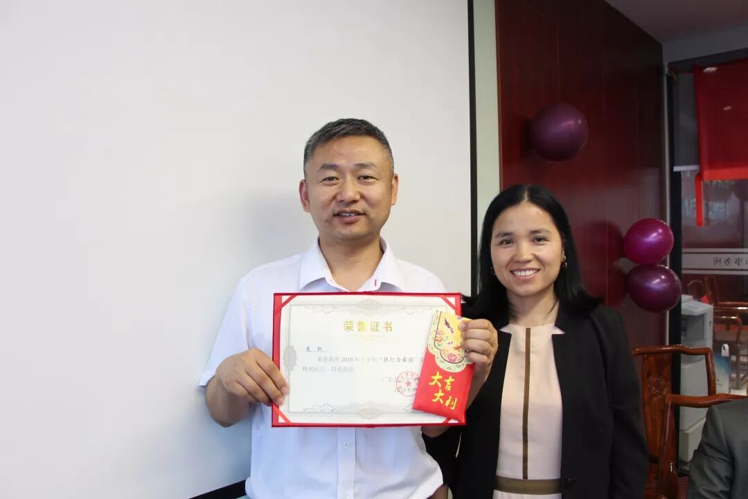 他经验丰富,对于经办的案件从不拖延,高效完成各类法律文书,第一时间回应当事人需求。他被授予最佳执行力奖。他是吴凯律师。(颁奖人:陈榕英总监)
