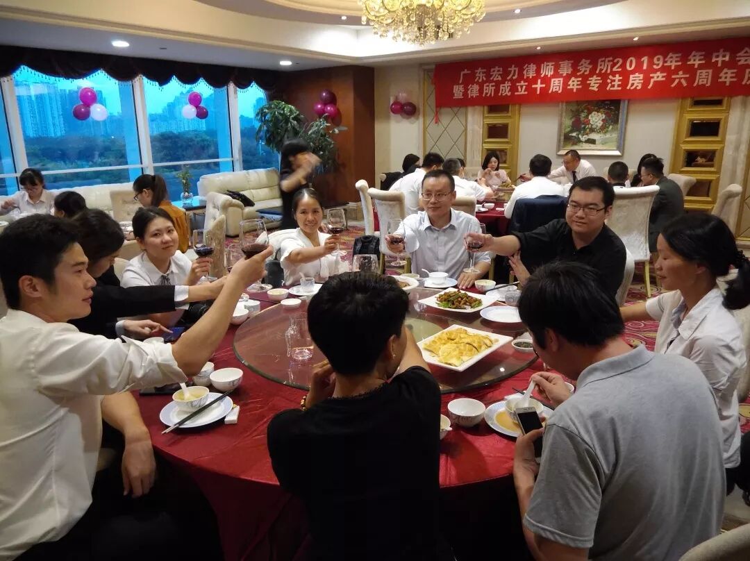 会议结束后,律所各位同事们前往酒店聚餐,为我们2019年上半年取得的成绩庆祝,吕主任再次致辞表示对全体成员工作的肯定,同时与罗欢平副主任分别跟每位同事敬酒表达感谢和对每位同事下半年寄予的期许。