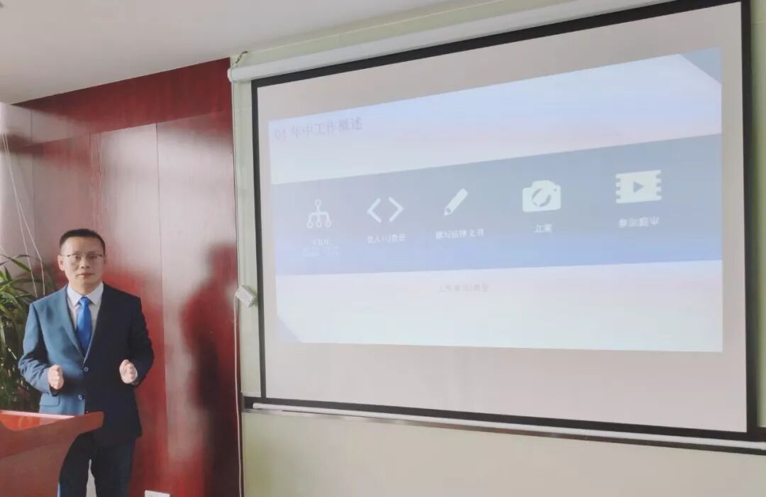 张艳明律师在本次年中汇报中表现突出,他以PPT的形式向大家展示了自己这半年以来的主要工作以及所获得的的工作经验,在辅助办理案件时,他会对每一个案件进行整理,总结办案模板,梳理实务技巧,并每日进行案件进度管理,他在最后向大家说到,自己要努力成为一名专业性强,有责任感的法律人。