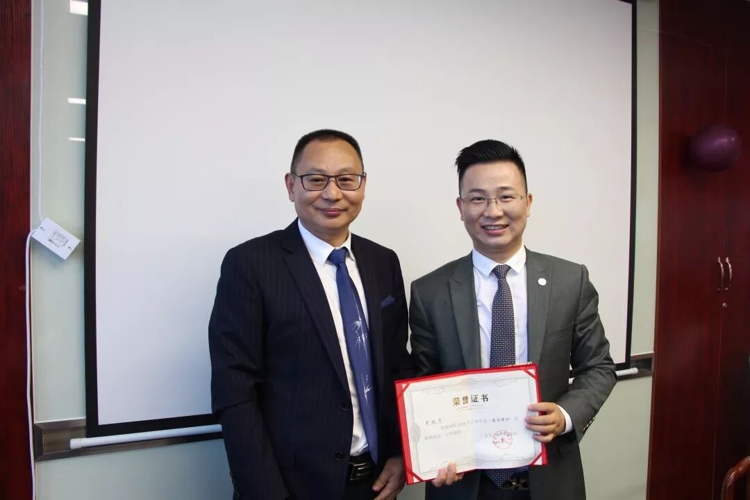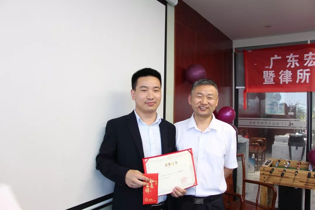 他利用一切可以利用的时间,投入全部精力,解决一个个疑难案件,同时也让宏力律师事务所的影响力不断增大,为此我们授予他最佳律师奖。他就是罗欢平律师。(颁奖人:吕传文主任)