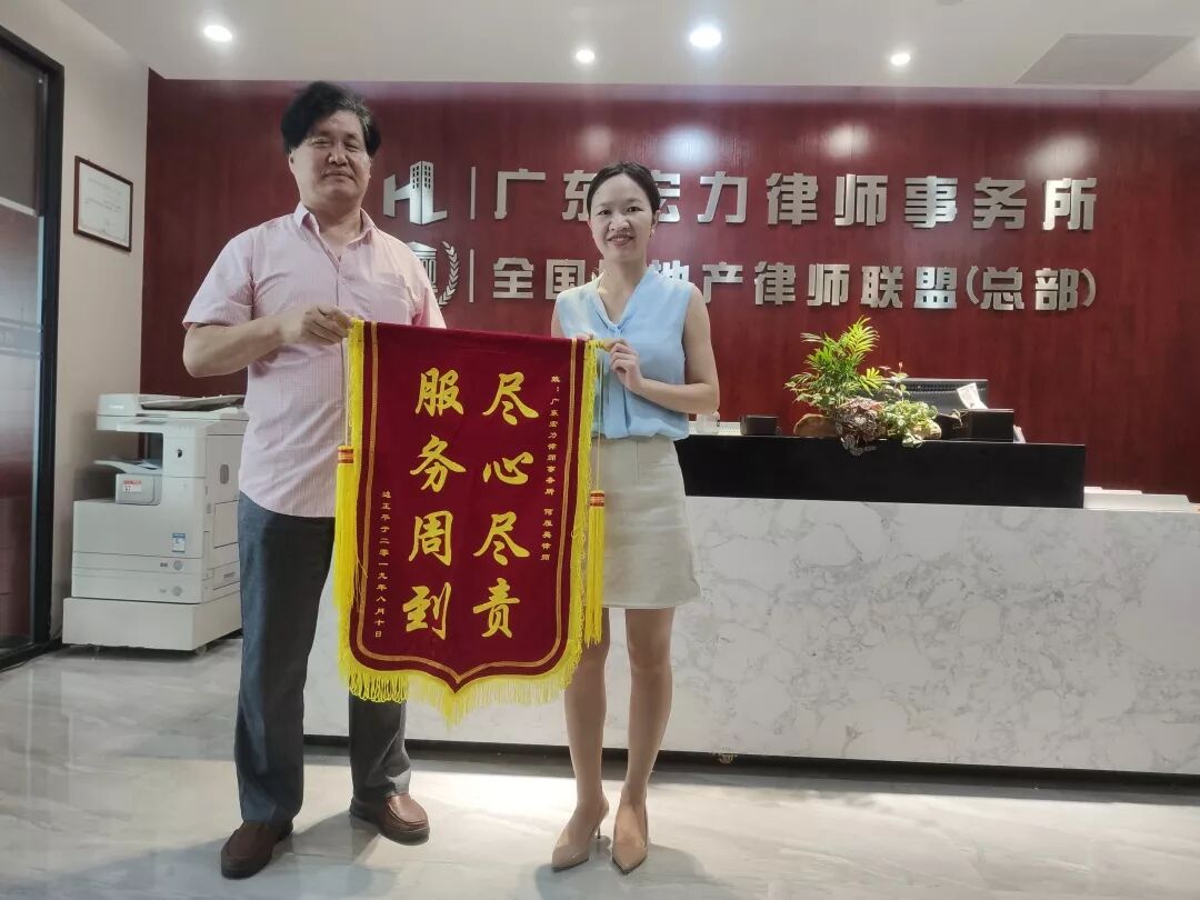 在宏力律师事务所最初接到委托人委托的时候,因为房屋购入年代已久,很多材料缺失,房屋买卖合同和收据都没有,局面是很被动的,要准备相关证据材料,就得想办法从各方调取,作为宏力律师事务所办案能力一流的何律师肩负此重任,本着专业、尽责的态度,跟当事人耐心沟通,获取有效信息,奔走在涉案房屋地和当地房管局之间,收集物管费、保安费等收据和发票;对涉案房屋进行查册,确定所在楼盘已办理大确权;申请信息公开以确定涉案房屋权属清晰;开拓办案思路,查清涉案房屋在2004年已经确权可以为买受人办理过户手续;浏览政策文件,找到在2008年为解决历史遗留问题,广州市政府出台了相关政策规定来为该案提供有力的证据支持。她专业尽责的办案态度也受到了委托人的称赞,事后,委托人边先生特地来到宏力律师事务所,向我们的何律师赠送锦旗,致以感谢。下面我们一起来看一下案件办理过程。
