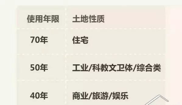 首先是土地规划用途不同,按照我国相关法律法规,我们平常的住宅建设用地最高是70年,工业、教育、科技、文化、卫生、体育用地,以及综合用地,最高为50年,而商业、旅游和娱乐用地,最高只有40年。所以40年、50年和70年这三种不同产权的房子,用途是不一样的;