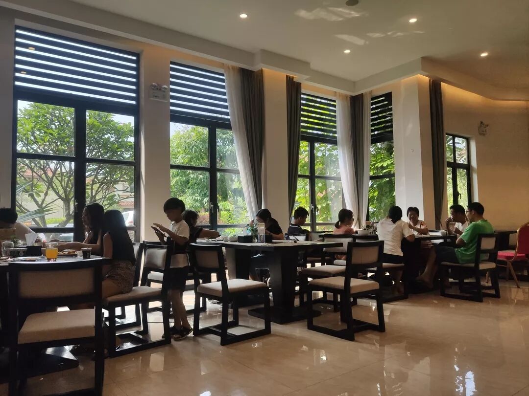 初来这样一个安静的度假地,大家身心得到放松,第二天,酒店准备了丰盛的自助餐,大家起床后三三两两结伴到餐厅享用了早点。