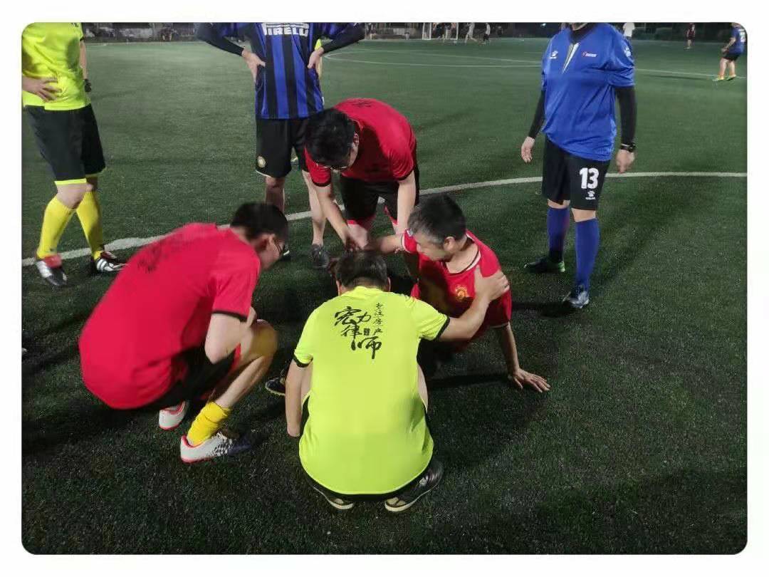 比赛过程中发生一点小意外,吴律师伤到了脚